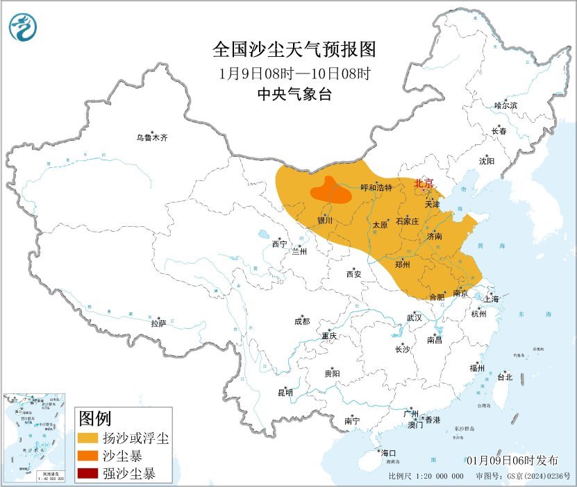 中央气象台1月9日06时继续发布沙尘暴蓝色预警富才配资,预计,1月9日08时至10日08时,内蒙古西部、宁夏中北部、陕西中北部、山西、河北中南部、北京、天津、河南、山东、安徽北部、江苏中北部等地的部分地区有扬沙或浮尘天气,其中内蒙古西部局地有沙尘暴。