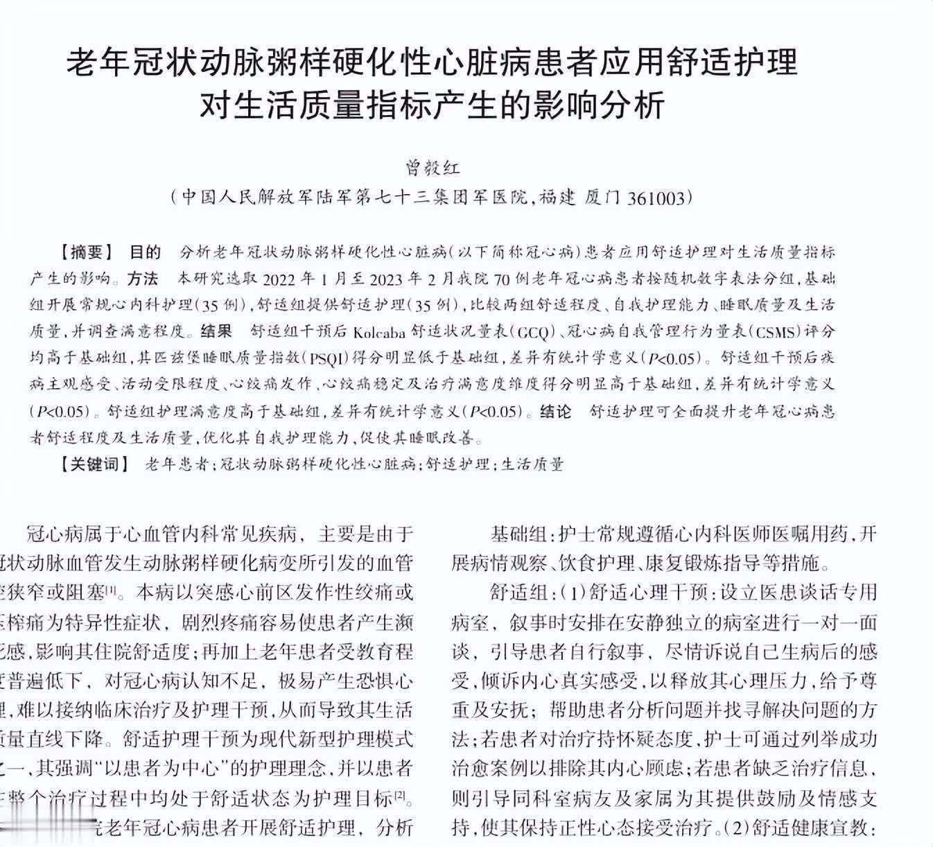 参考资料:[1]曾毅红.老年冠状动脉粥样硬化性心脏病患者应用舒适护理对生活质量指标产生的影响分析[J].心血管病防治知识盈配资,2024,14(02):121-123.
